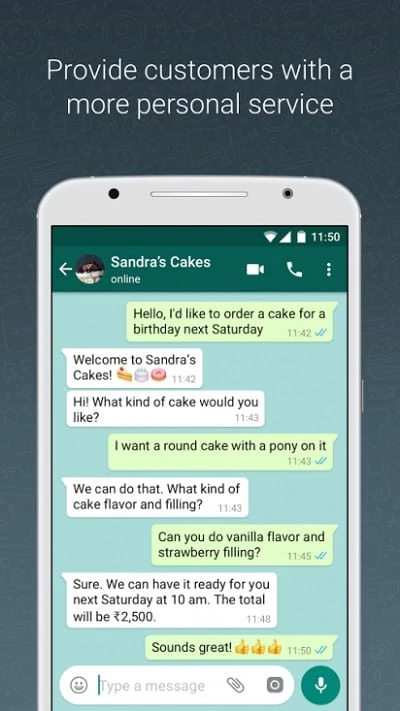 WhatsApp Business — лучшее решение для более точного управления бизнес-задачами, предлагающее множество функций. Это оптимальное сочетание инновационных инструментов, обслуживания клиентов и возможностей продаж, которое поможет вам вывести свой бизнес с локального на международный уровень. Оптимизируйте взаимодействие с клиентами, чтобы построить прочные и доверительные отношения с ними. Удобный интерфейс позволяет клиентам выполнять их потребности организованно и совершать покупки прямо в приложении, не выходя из чата.